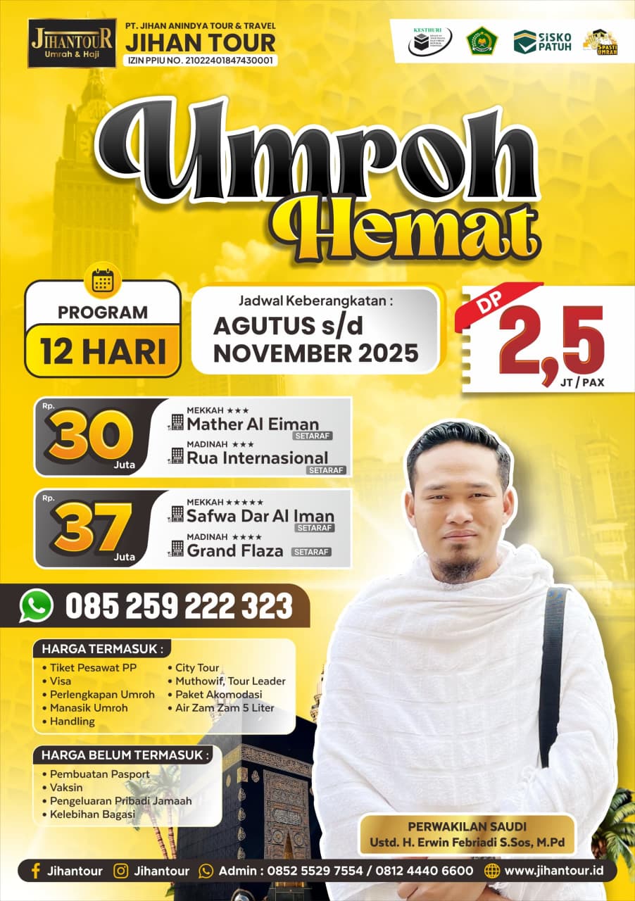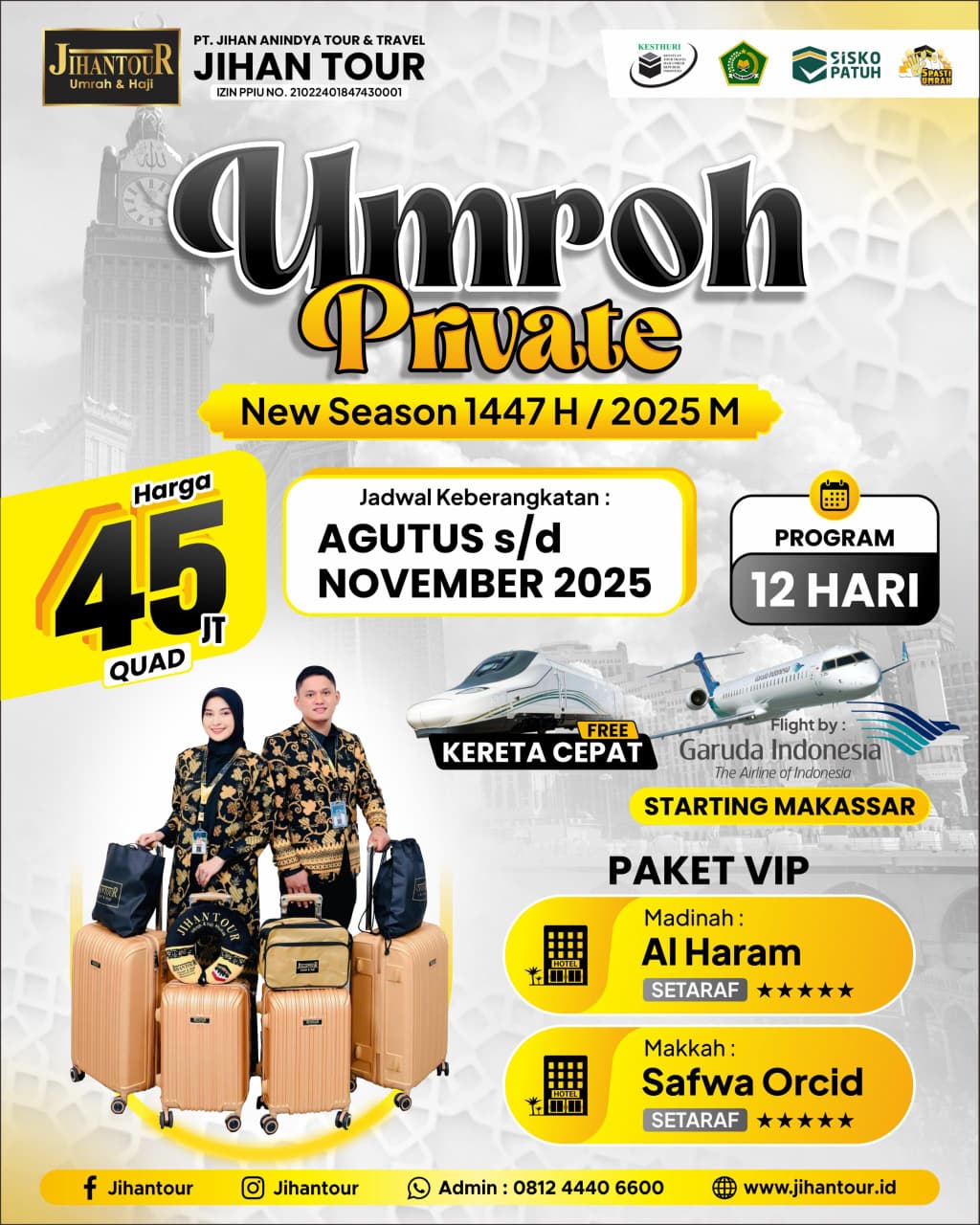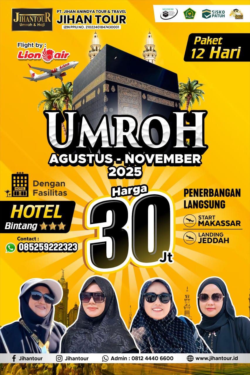 Syukran atas pelayanan istimewanya, insyaAllah kami akan menggunakan jasa JihanTour yang ke sekian kalinya jika ingin melakukan ibadah umrah lagi.